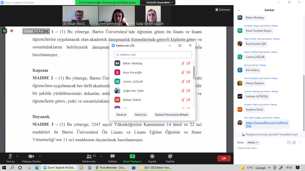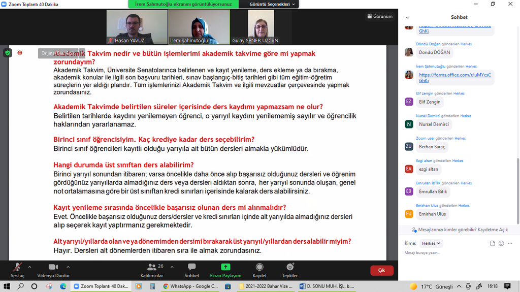 2021-2022 Bahar dönemi 1. Akademik Danışmanlık Toplantısı Gerçekleştirildi.